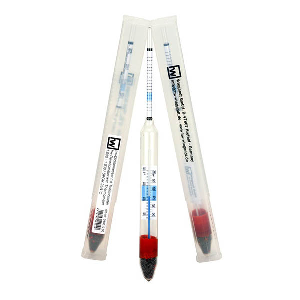 Durchführung einer Dichtmessung in Meerwasser mit dem hw® Dichtemesser mit Thermometer