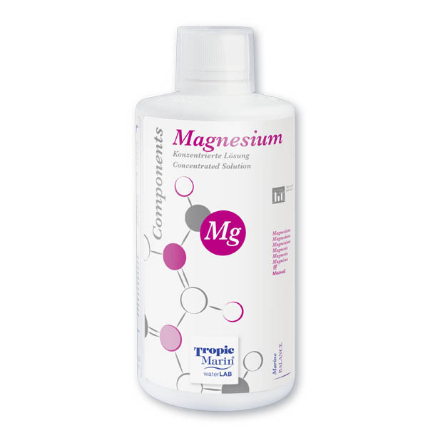 Hochkonzentrierte Lösung zur Zufuhr von Magnesium bei Defiziten im Aquarium. Magnesium ist als Erdalkalimetall wichtig für den Stoffwechsel und den Skelettaufbau, insbesondere von Kalkrotalgen. Es bildet mit Carbonat-Ionen Ionenpaare, die die Löslichkeit von Calciumcarbonat im Meerwasser erhöhen. Das Verhältnis von Magnesium zu Calcium sollte etwa bei 3,1 : 1 liegen. Einige Korallen und Kalkrotalgen lagern neben Calcium und Strontium auch Magnesium in ihr Skelett ein. Es ist biochemisch unmittelbar an der Photosynthese der Algen beteiligt, der Umwandlung von Kohlendioxid (CO2) und Licht in organische Verbindungen. Magnesium zählt daher zu den wichtigsten Mineralien des Meerwassers.