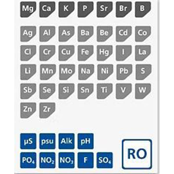 Mittels ICP-OES werden die chemischen Elemente der Meerwasserprobe analysiert. Zusätzlich werden andere Messmethoden zur Analyse von weiteren wichtigen Parametern und Nährstoffkonzentrationen verwendet. Zudem wird eine Probe des Umkehrosmosewassers geprüft.